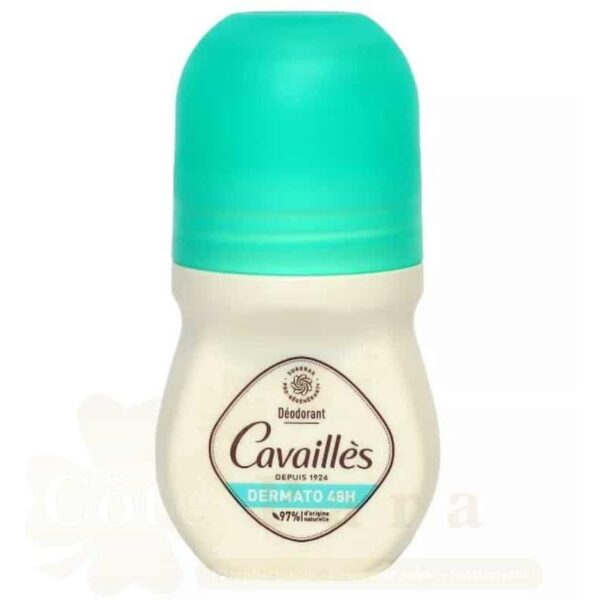 Rogé Cavaillès Dermato 48H Déodorant Roll-On 50 ml est un soin formulé pour convenir à toutes les aisselles, même les plus sensibles. Sa formule enrichie en surgras végétal pro-régénérant® et en huile de riz apaisante, elle protège efficacement contre les mauvaises odeurs. Ce déodorant offre un moment de bien-être grâce à son parfum frais aux notes de thé vert et de fleurs blanches. Disponible dans votre parapharmacie en ligne www.cotepara.ma 97% des ingrédients sont d’origine naturelle. Sans alcool. Testé sous contrôle dermatologique. CONSEIL D’UTILISATION : Appliquer quotidiennement sur des aisselles propres et sèches. Laisser sécher quelques instants avant de vous habiller. Indication : Hygiène corporelle. Peaux sensibles.